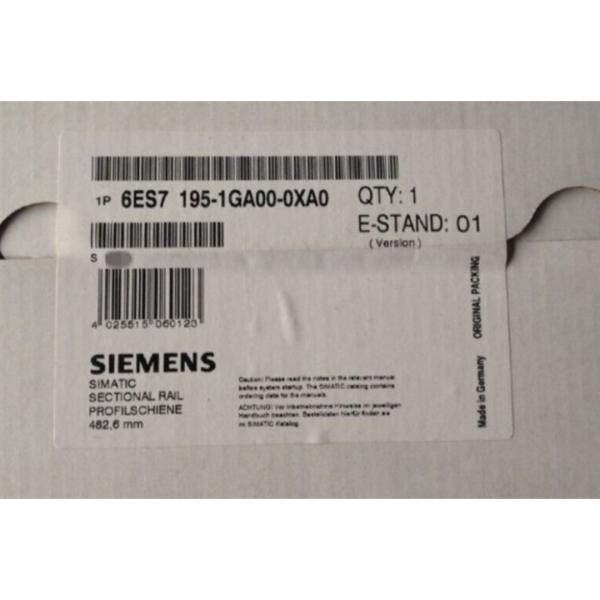 The **Siemens 6ES7195-1GA00-0XA0** is a **Simatic DP** mounting rail designed for the **ET 200M** system. This mounting rail is **482.6 mm** long and is used for holding bus modules, providing a mechanism for the removal and insertion functions within the system.