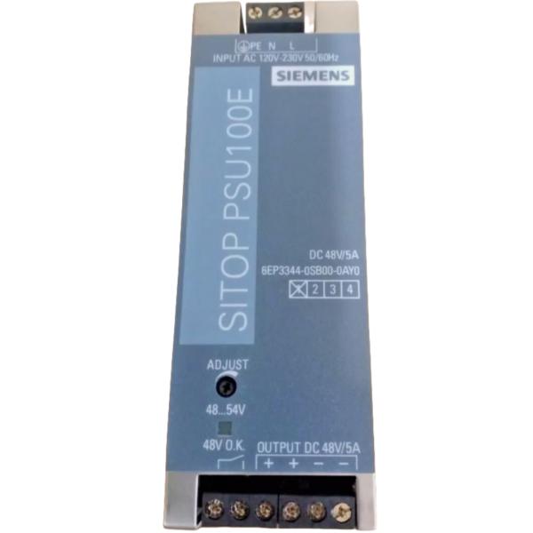 The **SIEMENS 6EP3344-0SB00-0AY0 SITOP PSU100E** is a stable power supply unit designed for industrial use. This unit operates with an input voltage of 120/230 V AC and produces a steady 48 V DC output with a current rating of 5 A.
